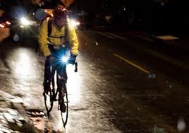Lights are required by law when riding after dark and in low-light conditions. A white light visible at least 500 feet to the front, and a red light or reflector visible at least 600 feet to the rear. These lights allow other people to see you from the back, front and side. For more visibility at night wear bright clothing, an orange vest, or use reflective tape. The more reflectors and lights, whether blinking, flashing or solid, the better.